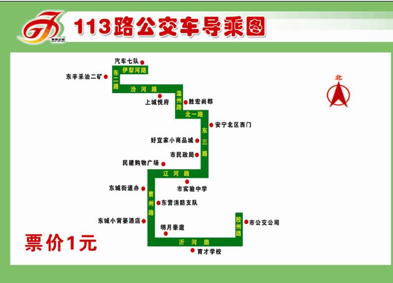 113路:該線路自汽車七隊始發(fā),經(jīng)伊犁河路(華瑞小區(qū))、東二路(東辛采油二礦、盛大商場),改經(jīng)汾河路(青盛小區(qū)、上城悅府)、溫州路(勝宏尚郡),到達北一路后,恢復(fù)原線路,線路里程、票價、班次均不變。