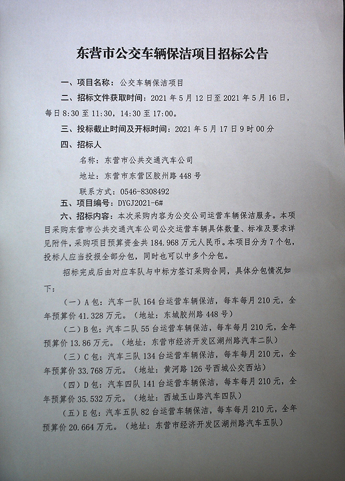 東營市公交車輛保潔項目招標公告