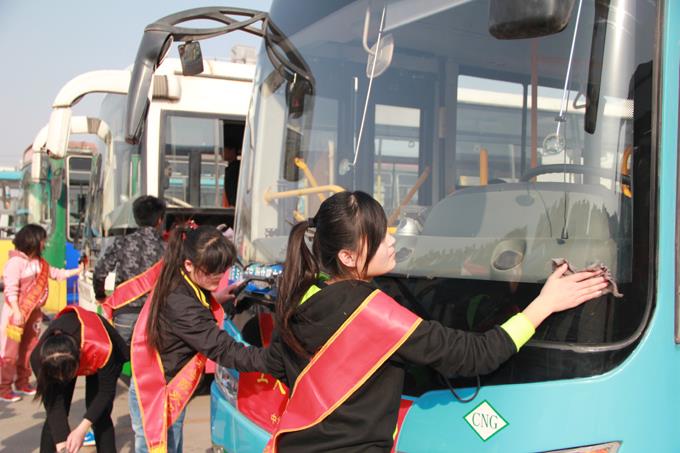 2013年3月9日上午,市公交公司汽車一隊聯合東營市職業學院會計學院的大學生開展了義務活動。參加義務活動的38人分為兩個活動小組,一組乘坐公交車上路為老、弱、病、殘、孕等特需乘客服務,以及在站點疏導乘客;另一組在汽車一隊駐地幫助擦洗公交車,清掃車廂衛生。大家工作起來井然有序,有條不紊,都認真投入其中,尤其活躍在車廂為乘客服務的志愿者們,更是得到了乘客的一致好評,成為公交車上一道亮麗的風景。