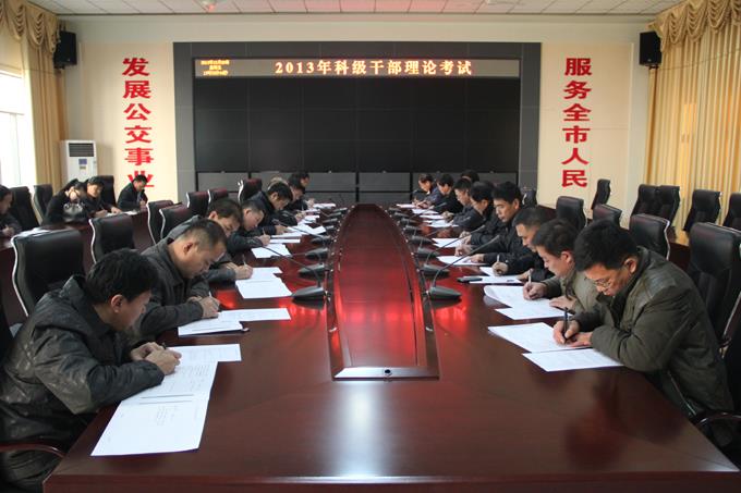 12月20日,按照市直機關工委、市學委辦公室的要求,市公交公司以開卷考試的形式,組織66名副科級以上干部進行了干部理論考試??荚囉墒兄睓C關工委統一命題,重點檢查了對黨的十八屆三中全會精神、習總書記“中國夢”的構建、全市工作布局及對當前理論熱點問題的看法等。市公交公司66名副科級以上干部認真答卷,順利完成考試。