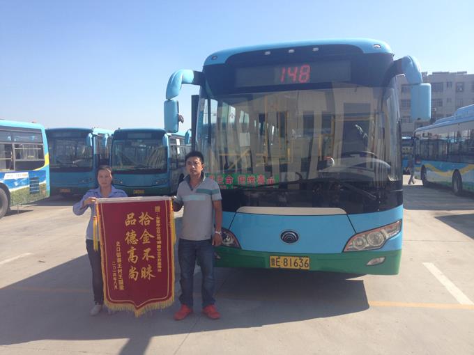 9月3日,家住東營(yíng)區(qū)史口鎮(zhèn)寨王村的王國(guó)梁先生乘坐148路車(chē)外出,下車(chē)后發(fā)現(xiàn)錢(qián)包遺忘在公交車(chē)上。汽車(chē)四隊(duì)駕駛員郭嘉撿到了王國(guó)梁先生遺失的錢(qián)包,發(fā)現(xiàn)內(nèi)有身份證、銀行卡、現(xiàn)金一萬(wàn)二千余元,忙將其上交車(chē)隊(duì)暫時(shí)保管,車(chē)隊(duì)及時(shí)聯(lián)系失主并將失物完璧歸趙。王國(guó)梁接過(guò)失而復(fù)得的錢(qián)包顯得意外而又驚喜,執(zhí)意要給公交車(chē)駕駛員郭嘉師傅酬金3000元表示感謝,被她婉言謝絕了。翌日,王國(guó)梁拿著一面寫(xiě)有“拾金不昧、品德高尚”的錦旗來(lái)到車(chē)隊(duì),感謝郭嘉師傅拾金不昧的高尚品德。