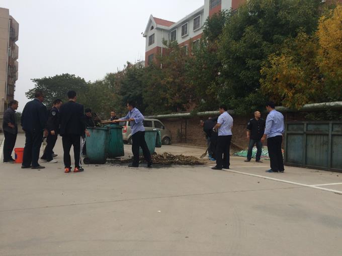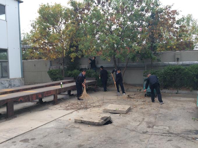 衛(wèi)生大掃除中,他們或三人一伙,或五人一組,有的負(fù)責(zé)修剪參差不齊的綠化帶,有的負(fù)責(zé)清理枯黃的雜草,有的負(fù)責(zé)拿著垃圾袋拾撿煙頭,有的負(fù)責(zé)清掃被風(fēng)卷到墻角的垃圾,有的負(fù)責(zé)裝卸和拖運垃圾箱,一個個忙的滿頭大汗,即使飛揚的塵土沾滿了衣服也全然不顧,令人為之動容。