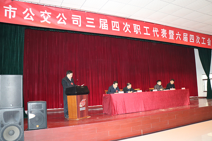 2月16日上午,東營市公交公司三屆四次職工代表暨六屆四次工會會員代表大會在公司南大會議室隆重召開。會議由公司副經理趙龍主持,公司黨委書記、經理朱新民,黨委副書記劉海,副經理孫紅光,副經理景洪培出席了本次會議,本次大會共有正式代表94人,實到92人,請假2人,列席代表9人。