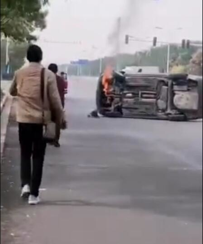 今天中午十二點半左右,在青島路上,一輛小轎車不知什么原因發(fā)生了側翻起火,火焰不斷向上躥,冒著濃濃黑煙。更令人揪心的是,當時車內還有三個人(據(jù)說是一家三口)被困車中沒能出來,隨時都有被大火吞噬的危險。