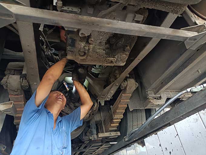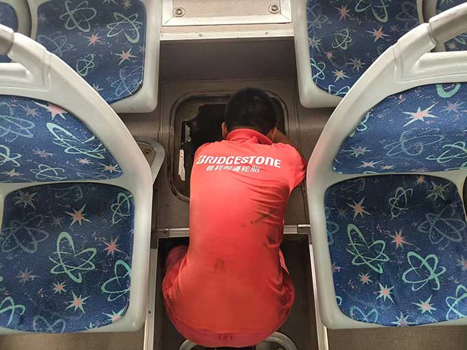 驕陽似火,汗水流淌,沾了頭發,濕了臉頰,卻阻擋不了他們對工作的熱情,這是一種承諾,更是一種責任與擔當。相比爬車頂維修空調的辛苦,鉆地溝也的滋味更不好受。不足一米深的地溝里,不僅悶熱,而且容易沾滿油垢。背靠堅硬的水泥瓷磚、頭頂公交車底盤,承受車輛部件散發的熱量,猶如鉆進烤箱。狹小的空間內,悶熱的空氣彌漫著刺鼻的機油味,底盤零部件上的塵土和油污隨著維修時的觸碰不時地落在頭上、脖子里、衣服上。為了排查故障,維修職工需要一直貓著腰、歪著頭,手上、身上滿是機油和污垢。幾分鐘的時間,豆大的汗珠就成串往下掉,工作服更是緊緊地“貼”在了身上。有時候,要檢修的部位比較靠里,在車底也無法觸及,只能從車廂里打開后座,順著幾十厘米直徑的小洞‘鉆進去’,基本上就是上半身在發動艙內,下半向在車廂內。盡管如此,保修職工仍然憑借頑強的斗志和精益求精的工匠意識,克服重重困難,完成各項保修任務。