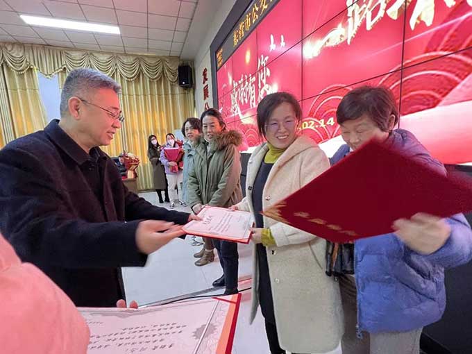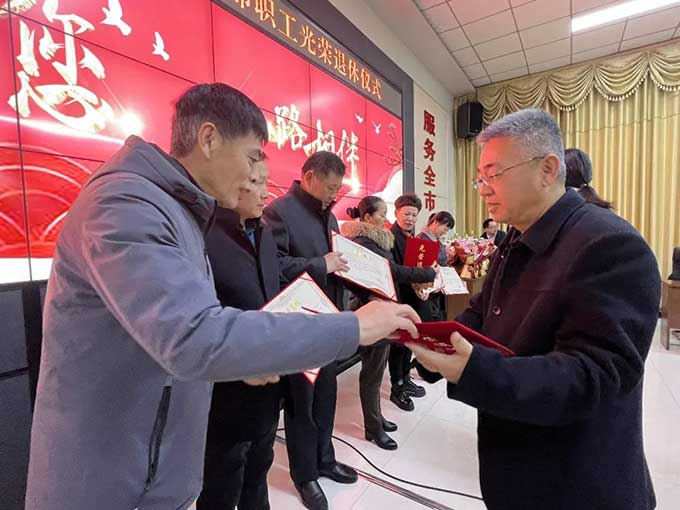 最后,趙龍同志為老同志逐一頒發榮退證書,并獻上鮮花。儀式過后,各位領導和參加儀式人員集體合影留念。