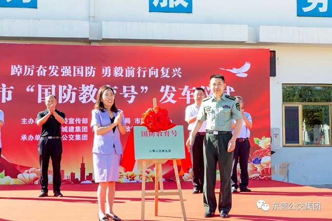 2023年9月14日上午,東營市國防教育號(hào)發(fā)車儀式在市公交集團(tuán)隆重舉行。市委宣傳部副部長邱家梅出席儀式并宣布發(fā)車,市交通運(yùn)輸局黨組成員、副局長戴景鵬致辭,東營軍分區(qū)政治工作處主任王志輝、市融媒體中心副主任趙國防、市城建集團(tuán)黨委副書記張文生、市公交集團(tuán)黨委書記趙龍等參加發(fā)車儀式。