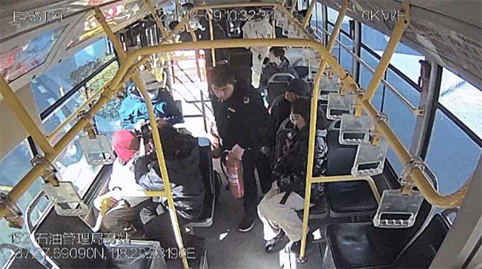 此時,東營市公交集團駕駛員袁華明師傅正好駕駛公交車經(jīng)過他沒有絲毫猶豫將公交車停在安全區(qū)域并迅速起身一把拎起車上滅火器飛奔向冒煙的三輪車第一個沖到現(xiàn)場。