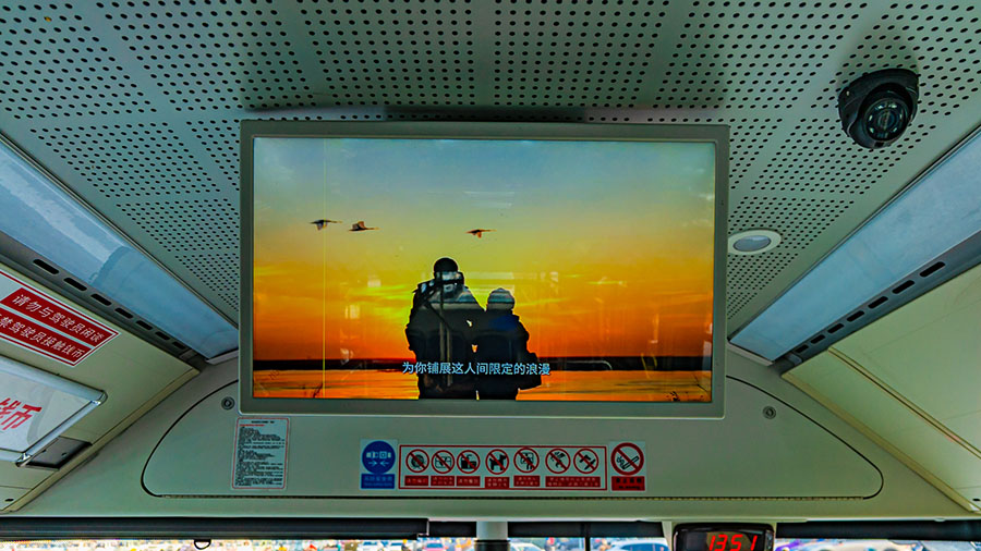 車身化身為流動畫卷,“沿著黃河遇見海、漫游寶藏小城”的動人標(biāo)語與鳥浪翱翔、黃藍(lán)交匯、鶴棲濕地等特色景觀圖片交相輝映,在穿行街巷中展現(xiàn)著東營的生態(tài)之美。線路新增“荷塘濕地”“濕地觀景臺”兩處站點(diǎn),精心設(shè)計(jì)的“站牌畫面”讓市民在短暫候車時刻也能領(lǐng)略到濕地城市風(fēng)貌。車廂內(nèi),車載TV循環(huán)播放文旅宣傳片,生動呈現(xiàn)濕地生態(tài)的四季之美。