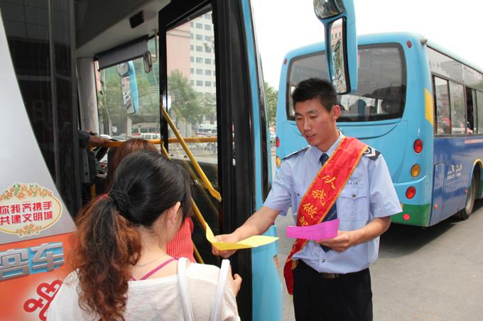 為了貫徹落實市委、市政府建設(shè)生態(tài)文明典范城市總體要求,深入推進(jìn)市局“五城聯(lián)動”統(tǒng)一集中行動,確保各項任務(wù)指標(biāo)的順利實現(xiàn),市公交公司于5月11日上午在我市東西城以及八分場共7處主要站點開展了“文明乘車,從我做起”文明勸導(dǎo)活動。