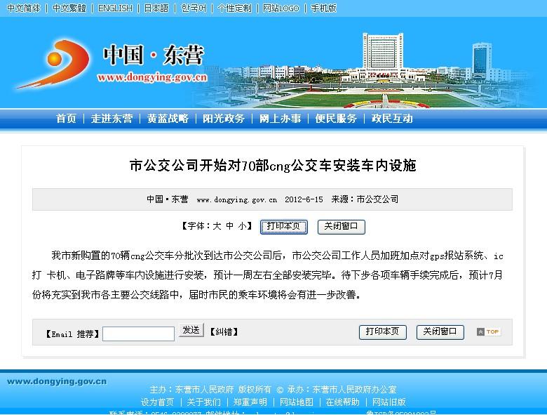 2012年6月15日東營市政府網站報道