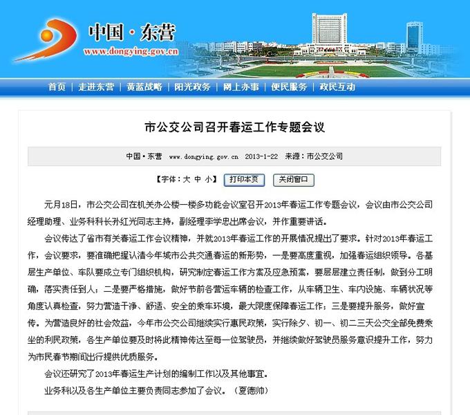 2013年1月14日東營市政府網站報道
