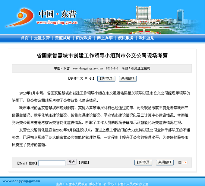 2013年2月1日東營市政府網站報道
