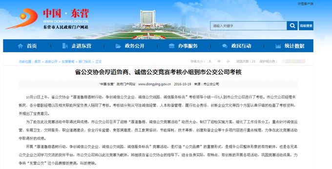2016年10月19日東營市政府網站報道