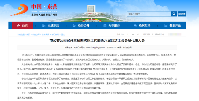 2019年2月18日東營市政府網站報道